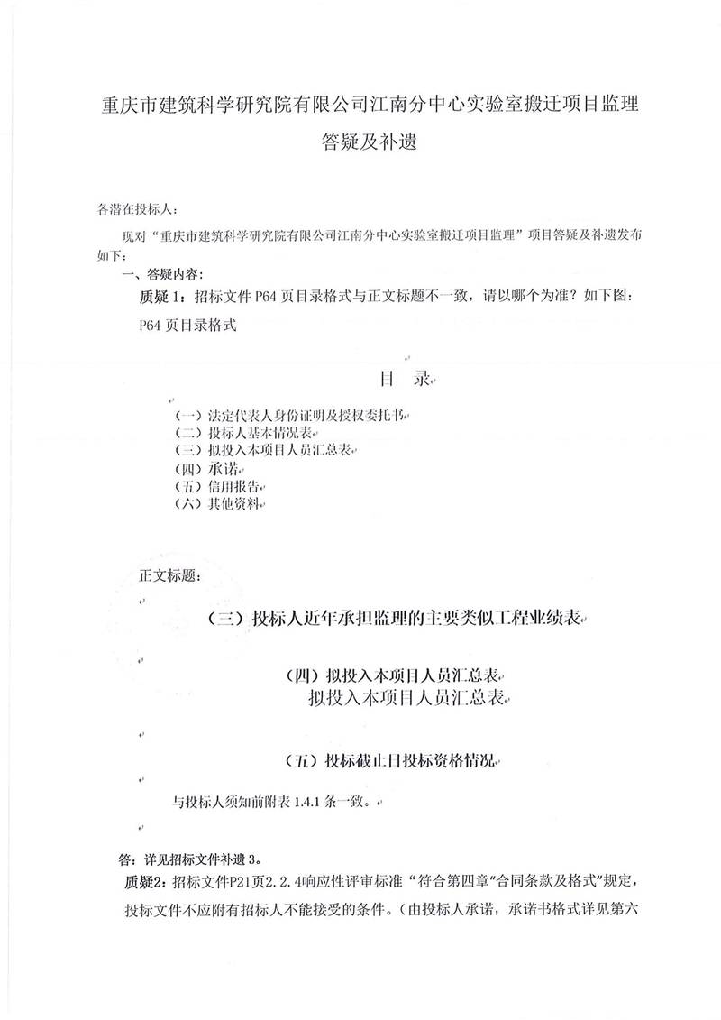 现对“如意彩江南分中心实验室搬迁项目监理”项目答疑及补遗发布如下: