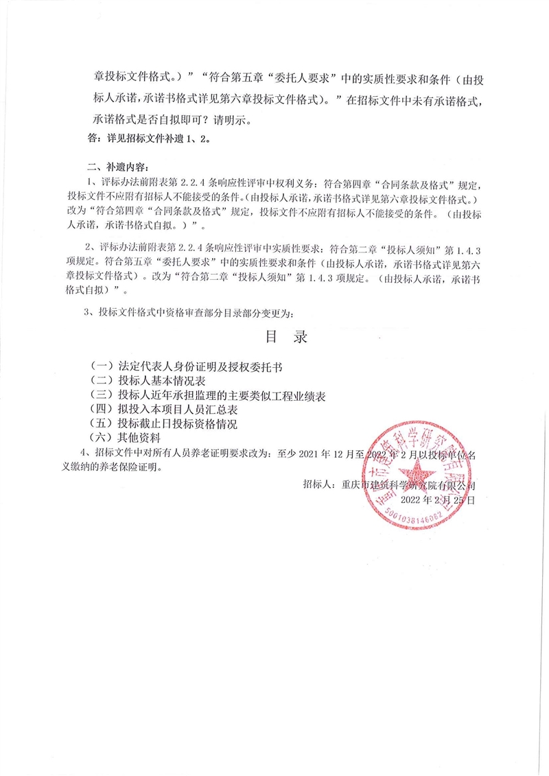 4、招标文件中对所有人员养老证明要求改为:至少2021年12月至2022年2月以投标单位名义缴纳的养老保险证明。