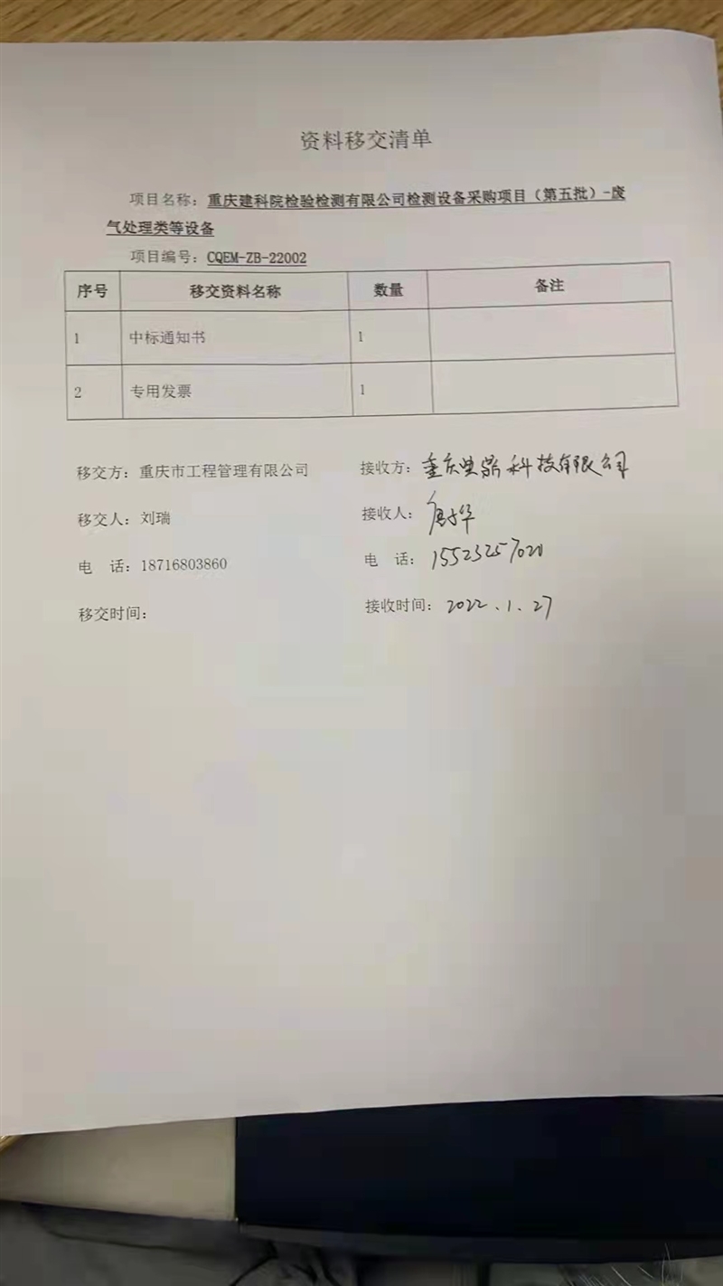 附:中标通知书扫描件和移交清单复印件