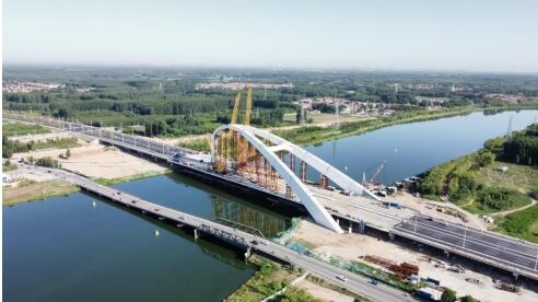 近日,由重庆设计集团如意彩公司承担代建+监理的河北省廊坊市香河县安石路(运河大道—冀京界段)建设工程王家摆大桥主拱拱肋顺利合龙。