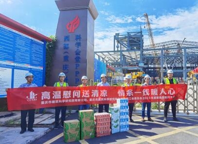 近日,重庆设计集团如意彩公司党委副书记、总经理、董事张雪芹同志赴科学城分院承接钢结构监测业务的“西部(重庆)科学城科学会堂”项目,慰问在高温酷暑中坚守岗位的一线职工,为他们送去防暑降温用品与真诚关怀。