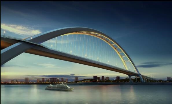 泸州市蓝田过江通道(蓝田长江五桥)及连接线工程是《泸州市跨江通道专项规划(2014-2030)》中规划的新建8座跨江通道之一,是龙马潭、江阳、城南组团间重要的联络线,项目包含跨江主桥、两岸引桥、学院中路升级改造、未来大道延伸线工程等,总投资约35.74亿元。其中,主桥净跨径为570m、总长度为612m,为目前在建世界最大跨径中承式钢箱拱桥。项目建成后将与龙透关大桥共同形成泸州中心城区与南北组团之间的重要快速通道,进一步完善泸州城市骨架路网和交通基础设施,有效促进中心半岛与城南组团间的快速连接,为泸州加快构建新时代区域中心城市、发展城市经济提供强劲动力。