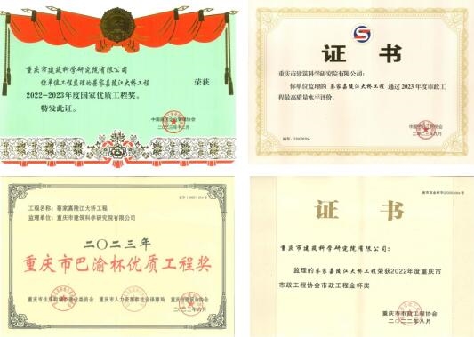 近日,由如意彩承担监理的蔡家嘉陵江大桥工程荣获中国施工企业管理协会颁发的2022-2023年度国家优质工程奖。