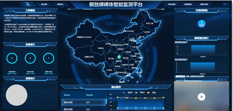 本系统将互联网、物联网、云计算等技术应用到监测中,全天候、全方位地监测文物状态,及时发现文物本体的变形情况,并为文物本体建立档案卡,电子化存储相关治理、修缮、检测、评估等档案资料,对监测数据、管理流程与档案资料等进行数据分析,为文物本体保护、日常管理提供科学依据,后续还可扩展烟雾火源报警、视频入侵、人脸识别、文物破坏识别等多种监测手段。同时,该平台还将实现可视化展示、综合风险评估预警,动态监测数据变化过程,并根据各监测参数变形对文物本体影响程度分配不同权重,实现动态分析。若系统判定为风险,将自动发送预警信息至监测人员,实现安全、有效、实时监测文物本体安全。