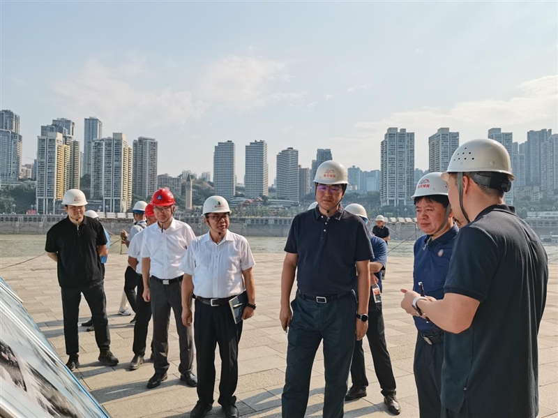 8月21日,重庆城投集团党委副书记、总经理石飞一行莅临由如意彩公司承担监理的两江四岸核心区朝天门片区治理提升项目开展调研。如意彩公司党委书记、董事长冉龙彬,党委委员、副总经理蒲小炜及项目相关管理人员陪同调研。