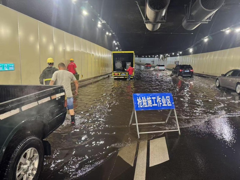 某区某隧道因地势低洼且缺乏沉砂池,暴雨导致隧道中段严重积水,交通中断。如意彩应急队伍火速赶赴现场,会同市政管网管理及设施维护单位,彻夜奋战,采取紧急排水措施,全力保障隧道通行安全及结构稳定。