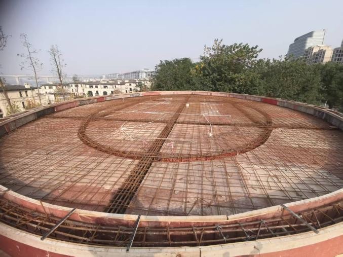 此项目为三个地块,地形高差大,导致机械作业受限、土方平衡与材料运输困难,施工组织与人员、材料、设备等资源调度复杂。同时,由于项目毗邻嘉陵江生态敏感区,对环保、文明施工及最终景观效果要求极高。弧形廊架、异形公厕等特色建筑物的质量控制亦是管理挑战。