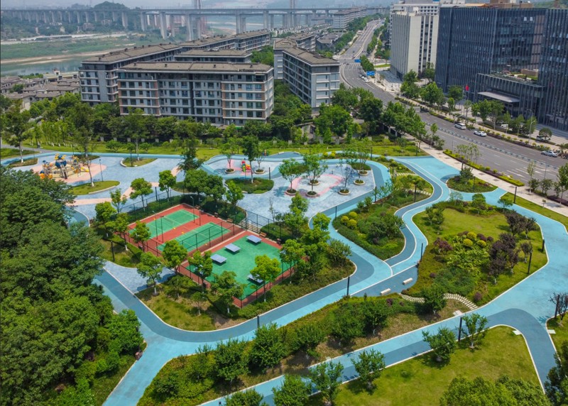 项目位于重庆市两江新区大竹林街道金州大道与华山北路交叉口,于2022年9月开工,次年4月竣工,占地面积10.2万平方米,被命名为“凤栖社区体育文化公园”,公园整体以“岛”空间为媒介,栈道串联为纽带的设计。定位为“城市绿肺”的社区文化体育公园,打造了“社区会客厅”“童顽汇”“运动汇”“邻里见面汇”“萌宠汇”等多主题生活场景。